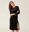 If you're looking to turn heads, look no further than Abel. Crafted from luxurious velvet in black, she's soft against the skin and flatters the silhouette beautifully. With a side skirt split that shows just the right amount of leg, we think Abel will look beautiful with some strappy heels and a signature clutch.