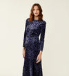 If you're looking to turn heads, look no further than Abel. Crafted from luxurious velvet in blue leopard, she's soft against the skin and flatters the silhouette beautifully. With a side skirt split that shows just the right amount of leg, we think Abel will look beautiful with some strappy heels and a signature clutch.