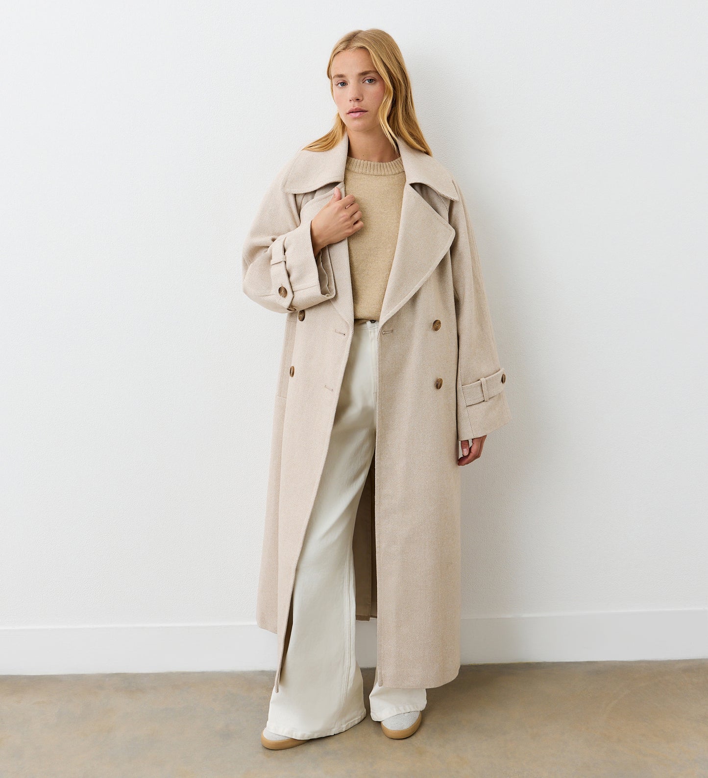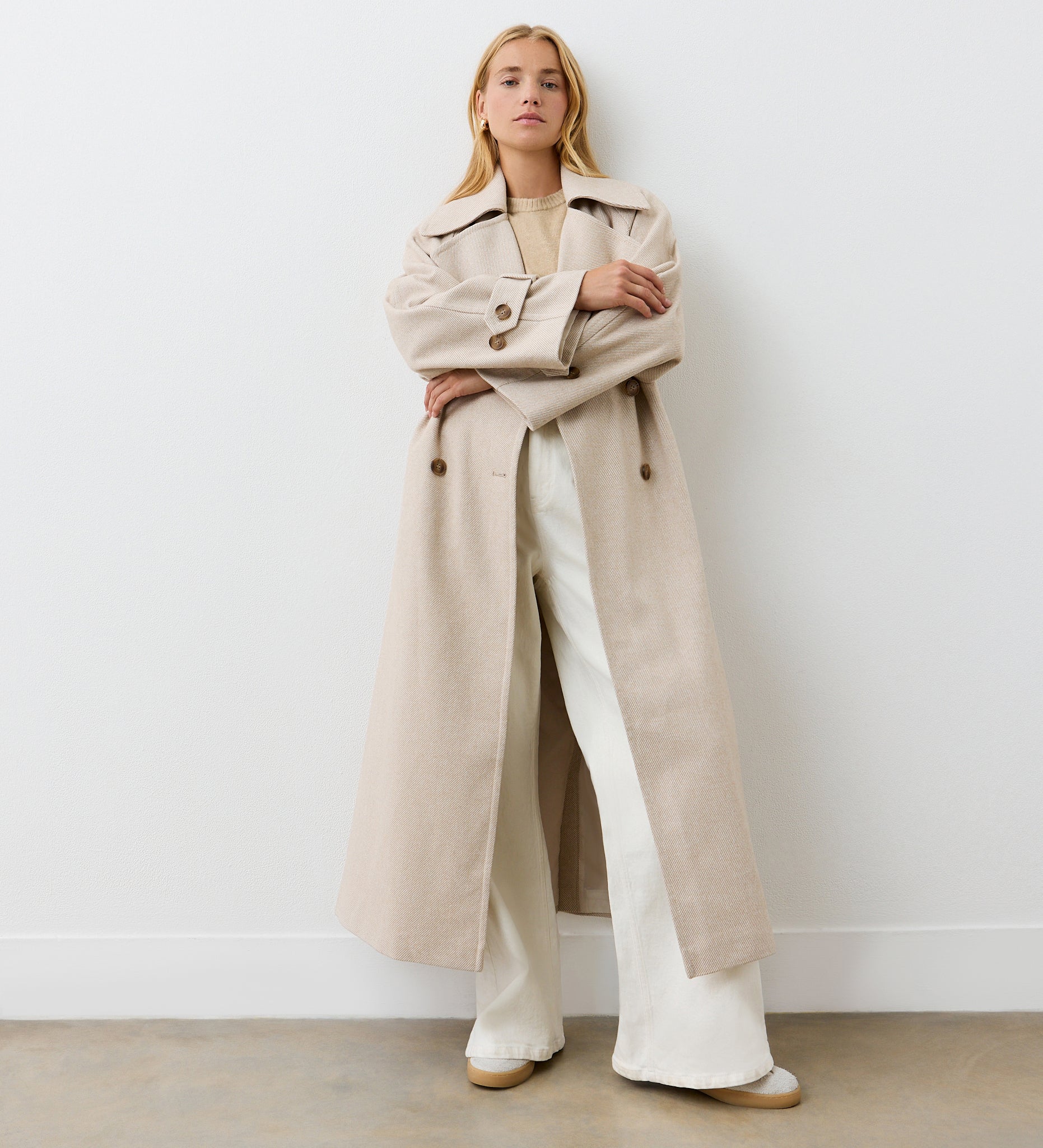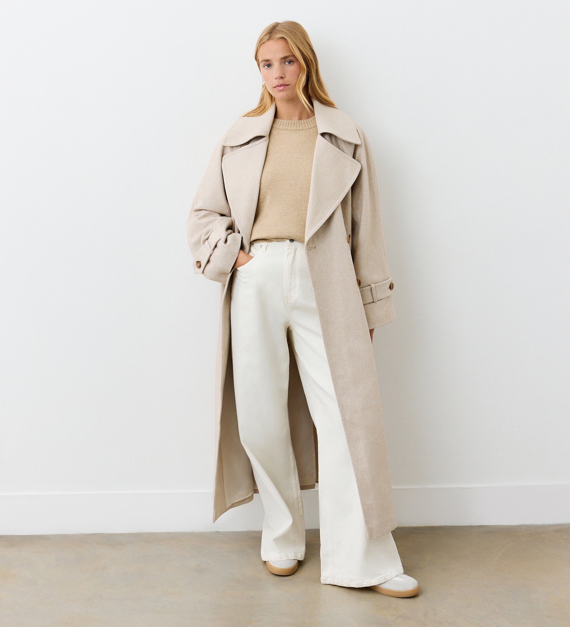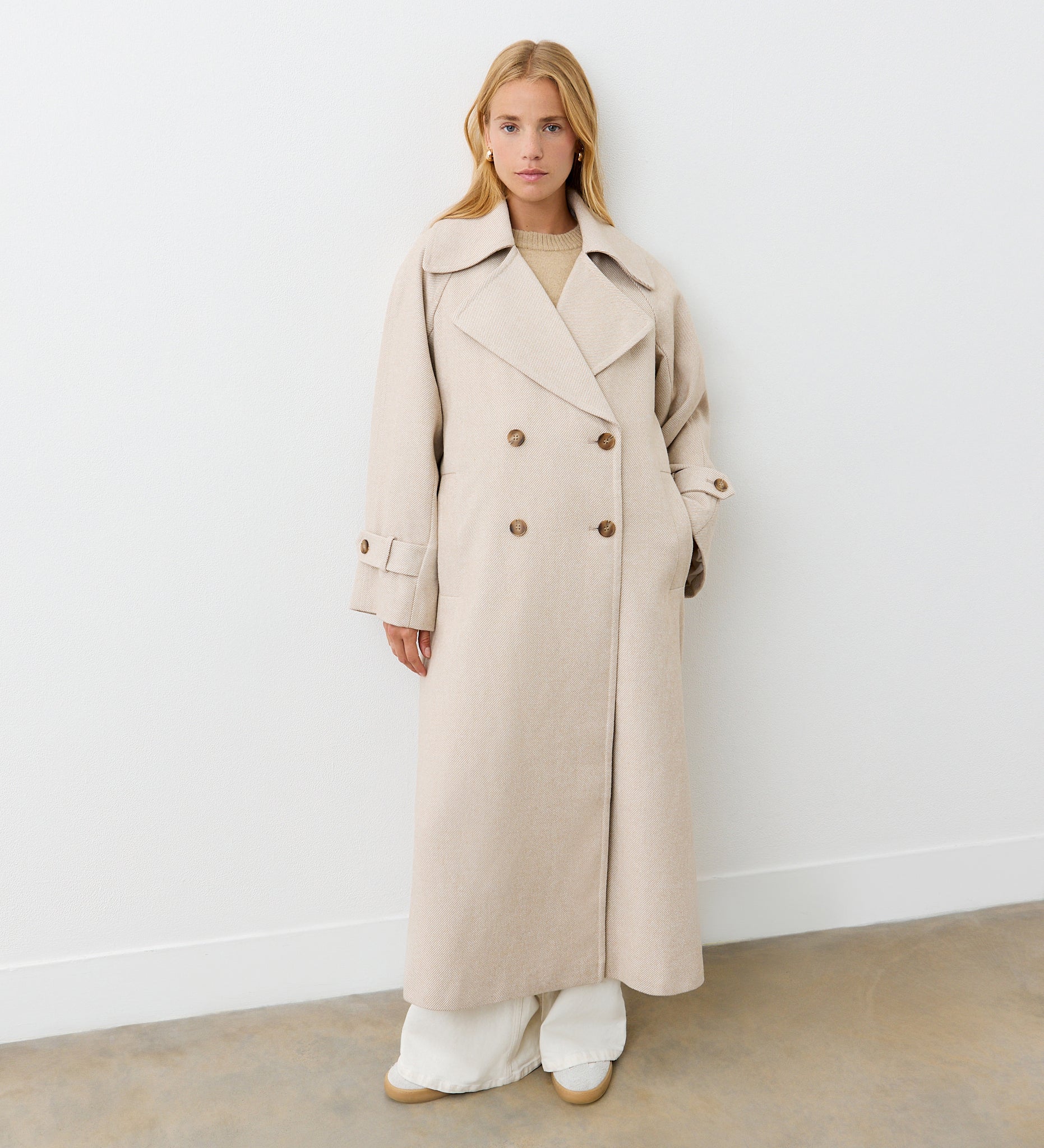 With a classic lapel collar, Adrianna is a longline silhouette coat with pockets and button tabs at the cuff. Perfect for layering, she’s the perfect coat to see you through this season and beyond.