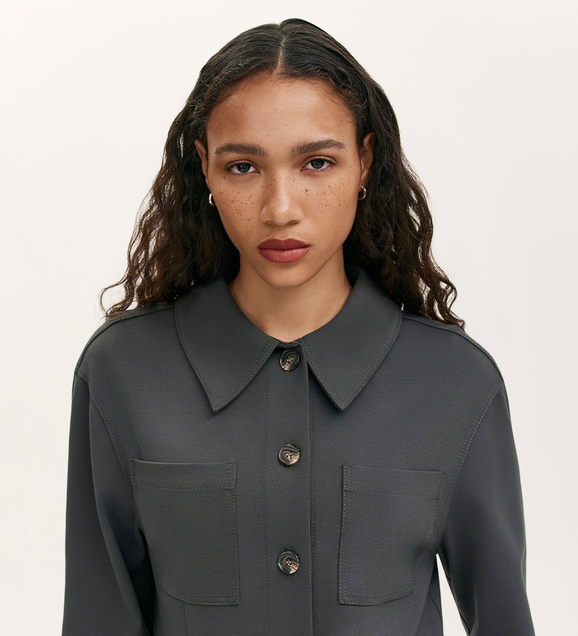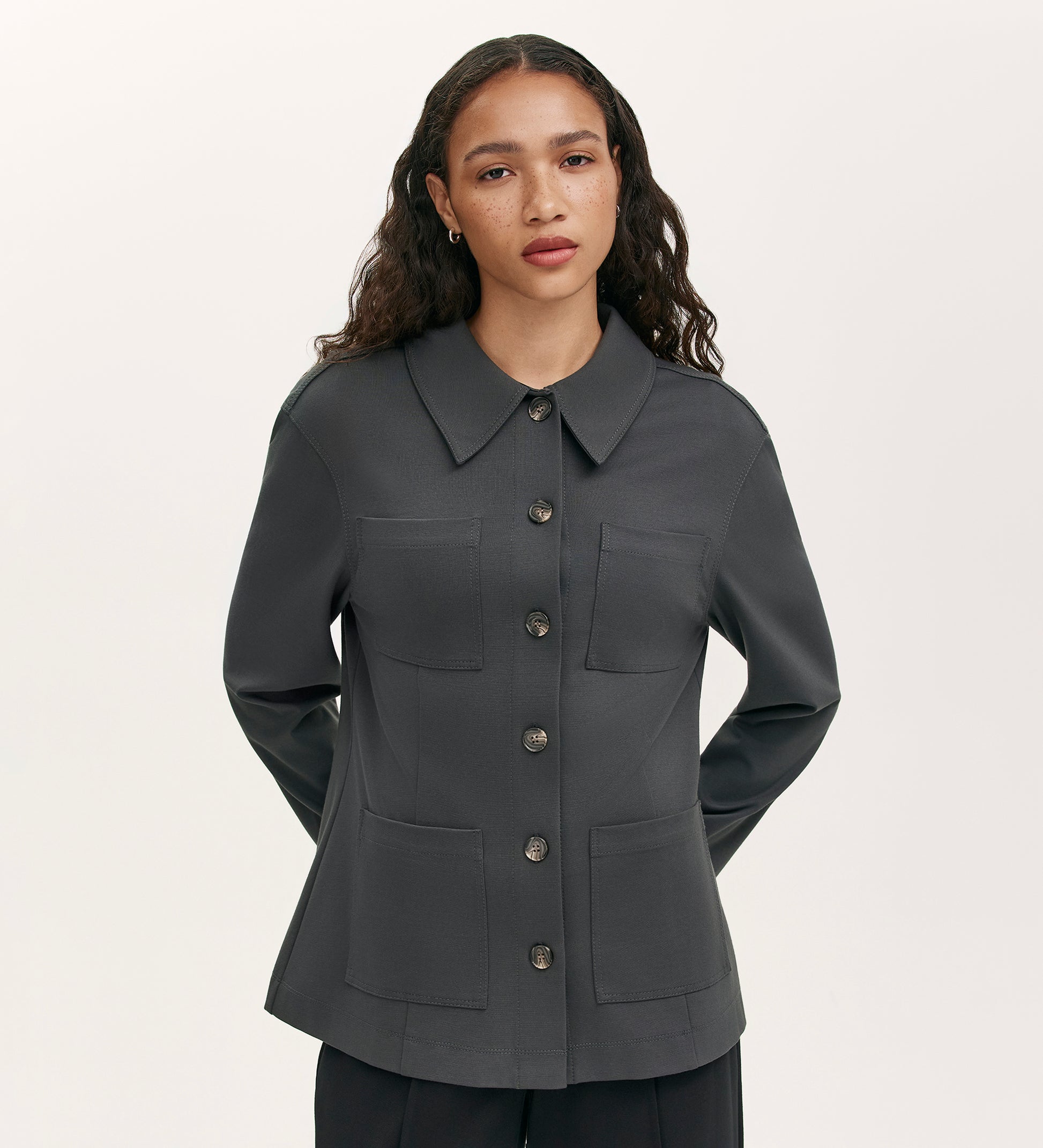 Agness Charcoal Ponte Jersey Button Down Jacket