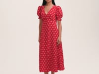 Pretty in pink - Alia is a fuchsia button-down midi dress crafted from our crease-free crepe fabric. She features short puff sleeves with elasticated cuffs and a feminine v-neck.