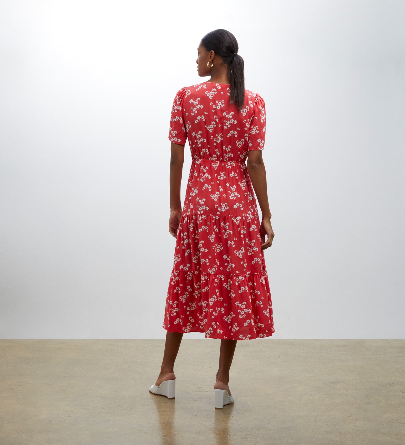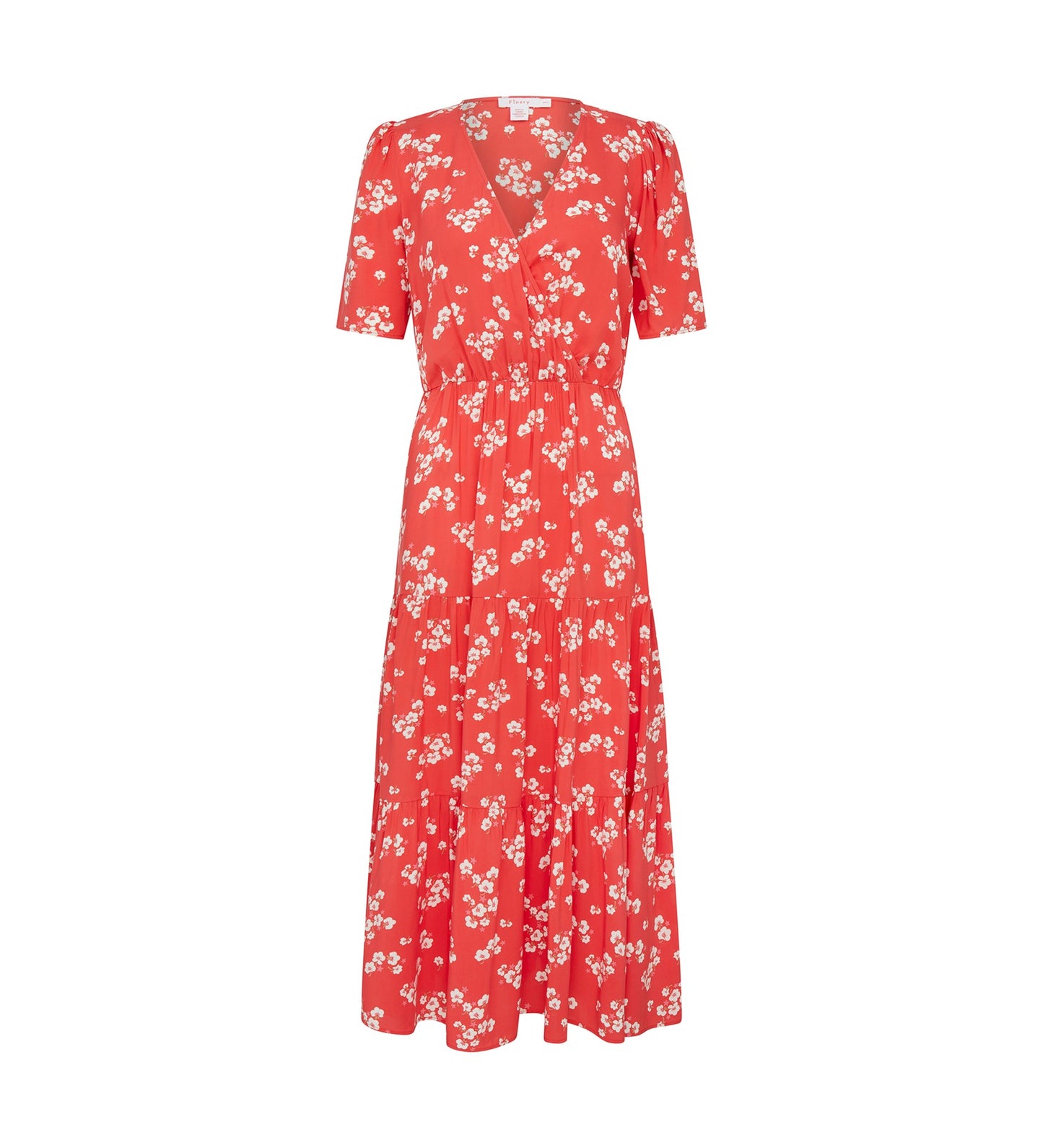 In a red blossom print, our timeless Amara wrap-style dress will be the envy of all your friends this season. With an elasticated waist and a tiered skirt, this dress is made to flatter and hug your curves beautifully. Made from 100 per cent viscose, Amara also features short sleeves, making it perfect for summer. Grab some sandals and you'll be summer party ready.