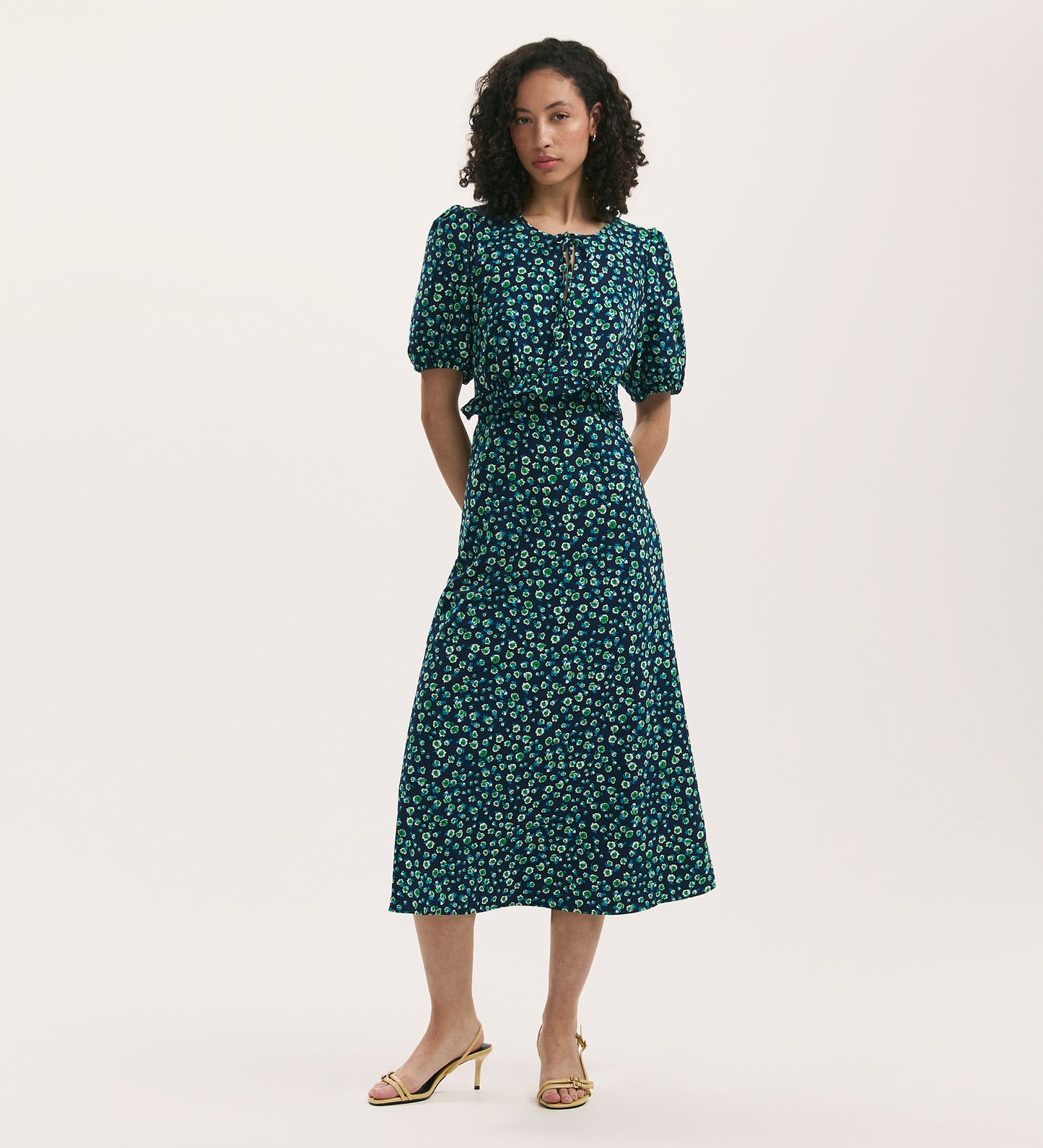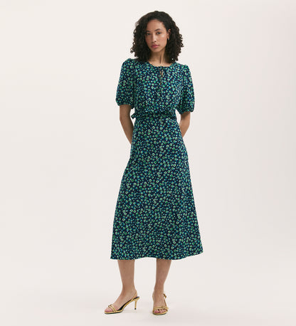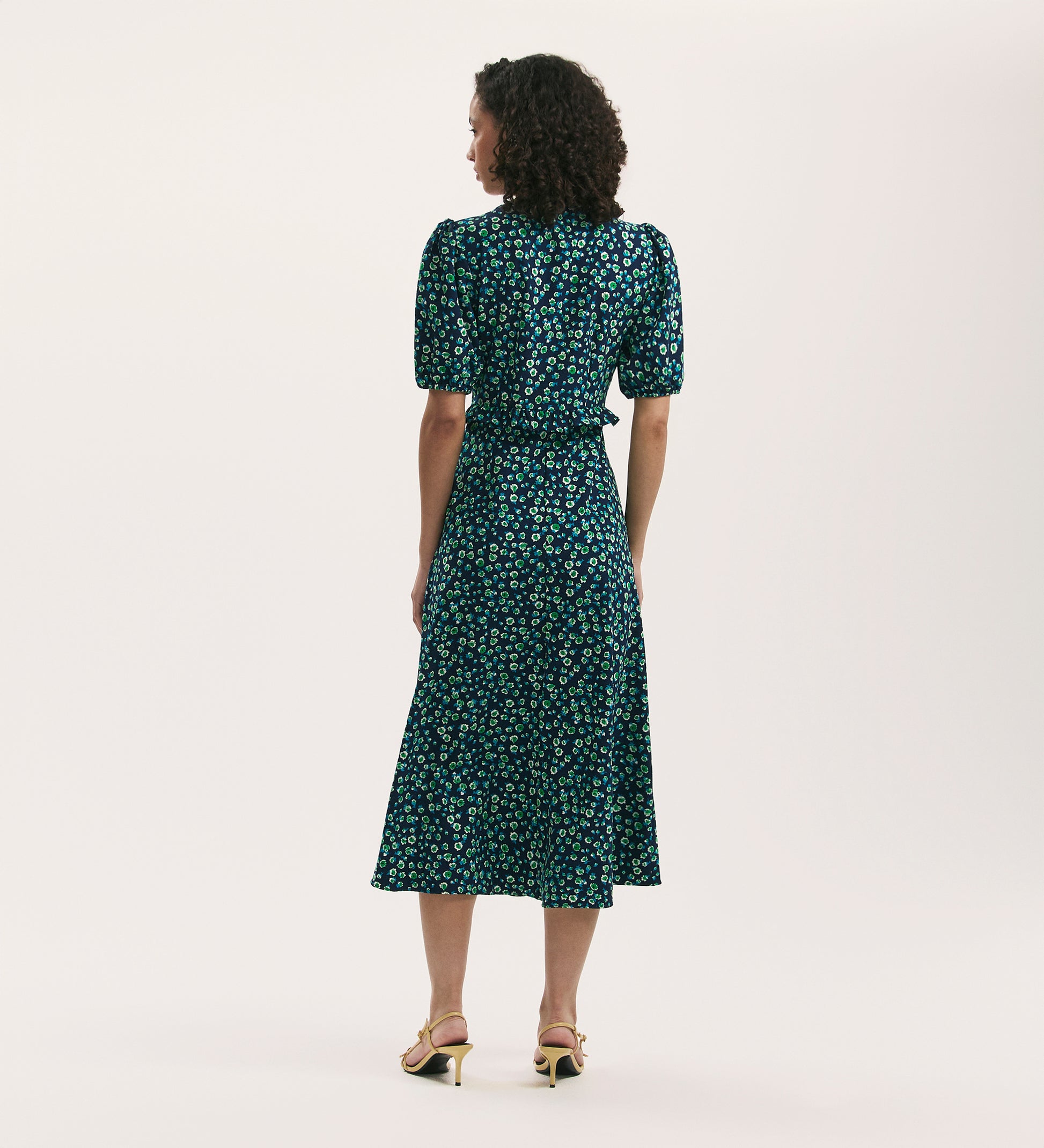 Anika Navy Ditsy Crepe Midi Tea Dress
