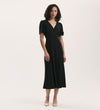 Simple yet stylish, April is a black relaxed fit v-neck midi dress with short sleeves, crafted from our signature jersey fabric.
