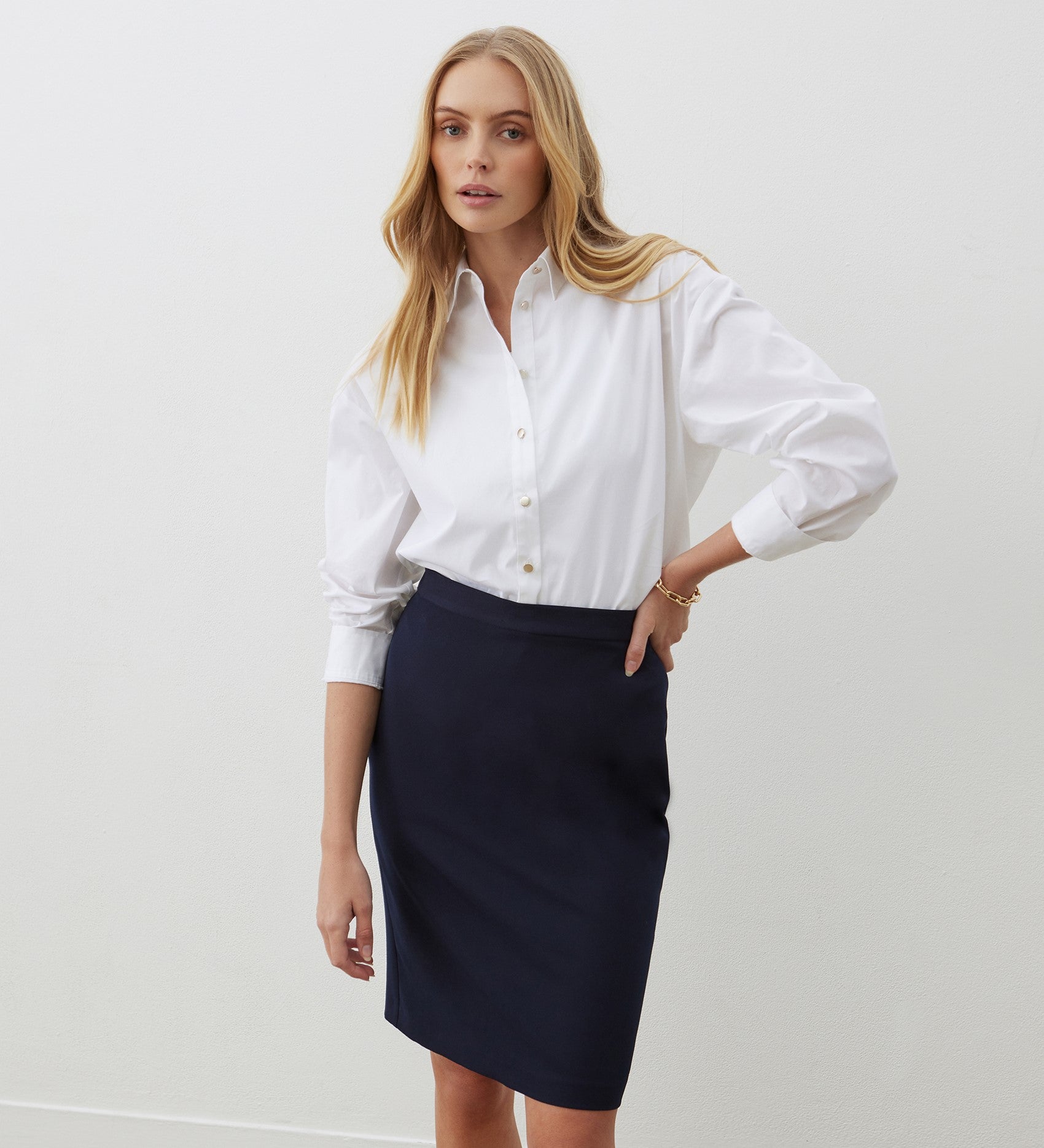 Bella Navy Knee Length Skirt