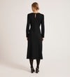 The Carla midi dress is a timeless and versatile addition to your collection, crafted from our comfortable and structured Ponte Jersey fabric. It features a classic round neckline and elegant long sleeves. The design is elevated by a flattering front pleat detail on the skirt, while the rear keyhole fastening adds a subtle, refined touch. Perfect for a polished, day-to-night look.