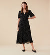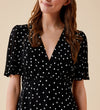 Cut from a viscose fabric in a polka dot print, our Caroline dress gathers under the bust and hugs the waist before falling into a flowing and flattering skirt, with short and floaty sleeves to match. With an classic v-neckline and side zip fastening, this dress is the perfect mix between formal and fun. Throw on with ankle boots or heels to complete the look.
