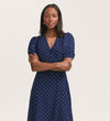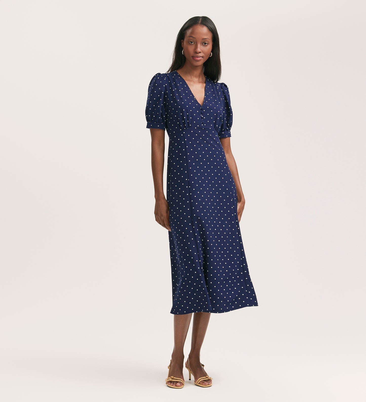 Colette Navy Polka Dot Crepe Midi Tea Dress
