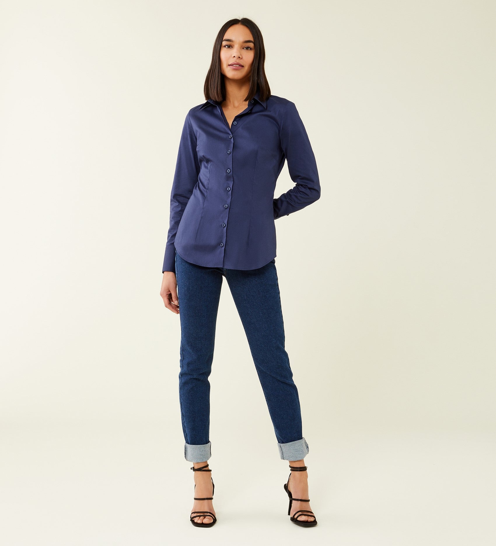 Daisy is our classic fully fitted shirt, crafted from our signature cotton poplin – she is a wardrobe essential. With a traditional collar and button-through style, pair yours with jeans, trousers or a skirt, the style possibilities are endless. The deep cuffs can be folded back to add an on-trend twist.