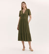 Meet Edith - our button front v-neckline midi dress crafted from our signature Jersey fabric. In a relaxed fit style, she's both comfortable and stylish with short sleeves, a tiered skirt and side pockets.