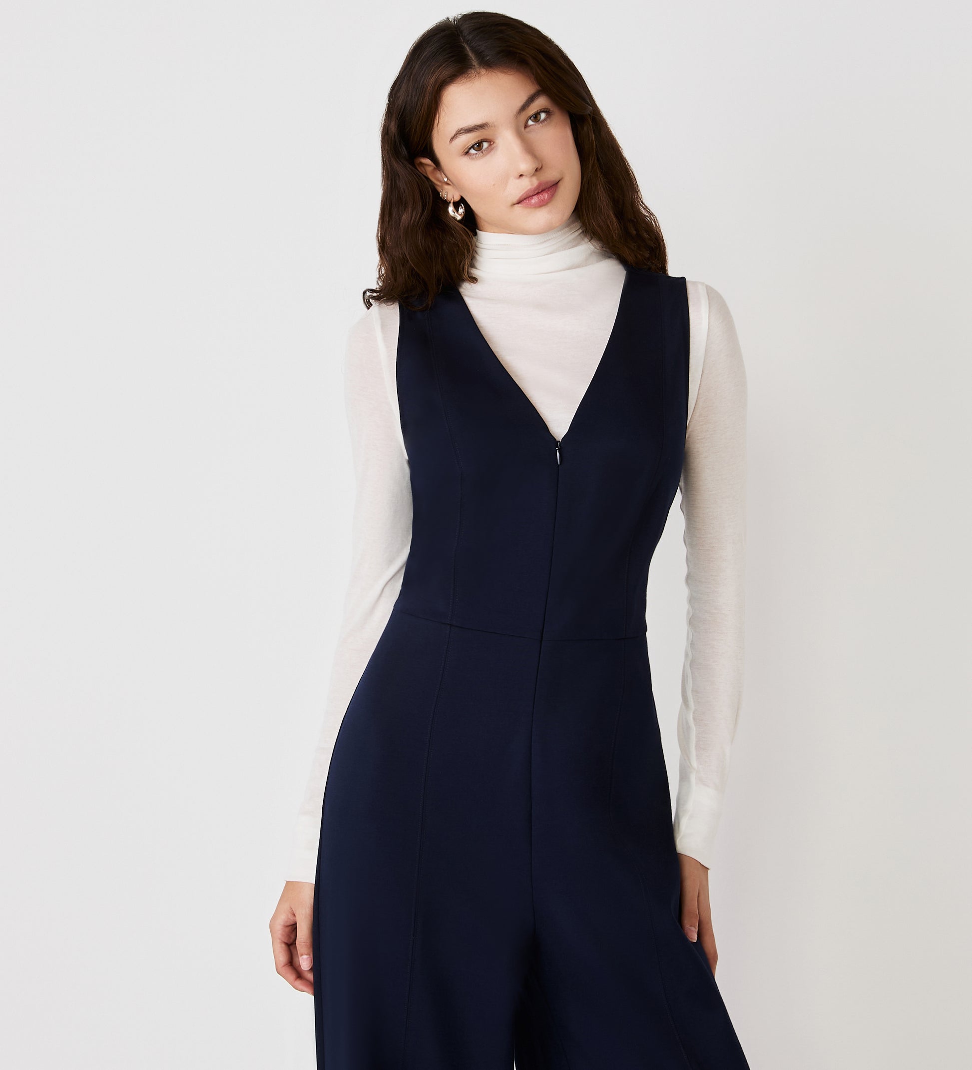 Effie is our wide-leg sleeveless jumpsuit crafted from our signature Ponte Jersey. A feminine v-neckline and princess seam detailing makes for a flattering fit as does the invisible zip fastening at centre front.