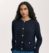 Elaine is a knitted cardigan that balances cosy texture with timeless detail. Featuring a round neckline and long sleeves, she's crafted in a classic cable knit and finished with gleaming gold buttons. Front pockets add practicality, while her relaxed fit makes Elaine an easy layering piece you'll reach for season after season.