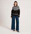Elina is a cosy knitted jumper that brings classic winter charm to your wardrobe. Featuring a round neckline and long sleeves, she's adorned with a timeless Fair Isle pattern and finished with ribbed cuffs and hem. Crafted from a soft yarn blend, Elina offers warmth and subtle texture, making her a versatile piece for layering or wearing on her own.