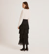 Elisa Black Mesh Midi Tiered Skirt