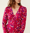A throw-on dress is the go-to outfit for an easy yet stylish look. Elizara is a buttoned-through midi dress in a red floral print that features an under-bust seam that gathers for an ultra-feminine look. Plus, the long straight sleeves and v-neckline exudes elegance. Grab a woolen knit or your favourite jacket to complete this seasonal look.