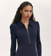 Elvira is a modern take on everyday dressing, designed with a collared neckline and sleek front zip opening. Cut from soft jersey, the midi length offers a relaxed yet refined silhouette, balanced with long sleeves for effortless versatility.