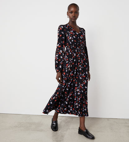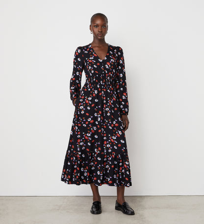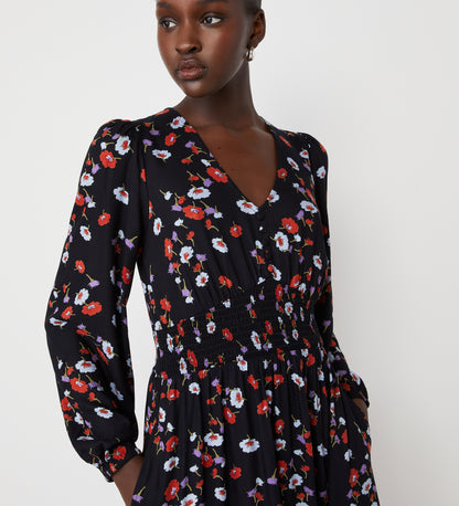 A floral wardrobe must-have, Erina is a midi dress with button detailing and a shirred empire waist that accentuates the silhouette. She also features full length sleeves and side seam pockets.