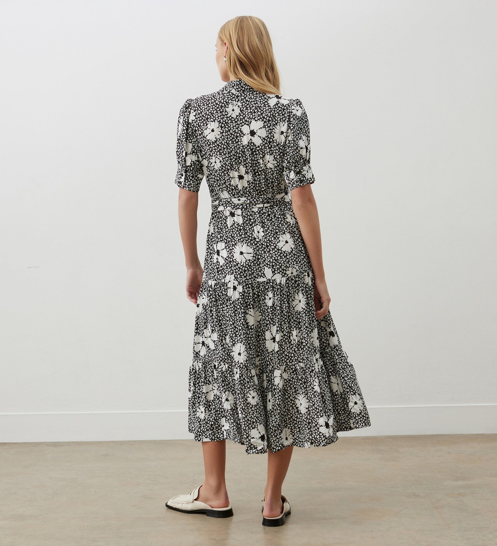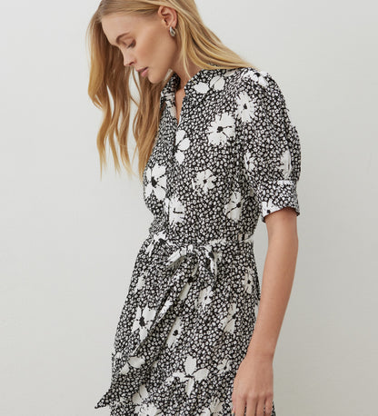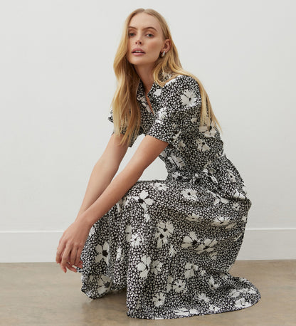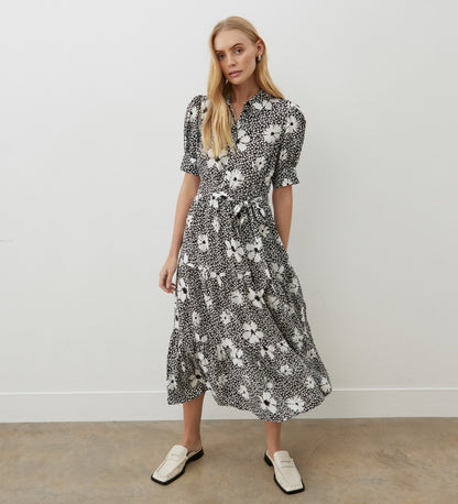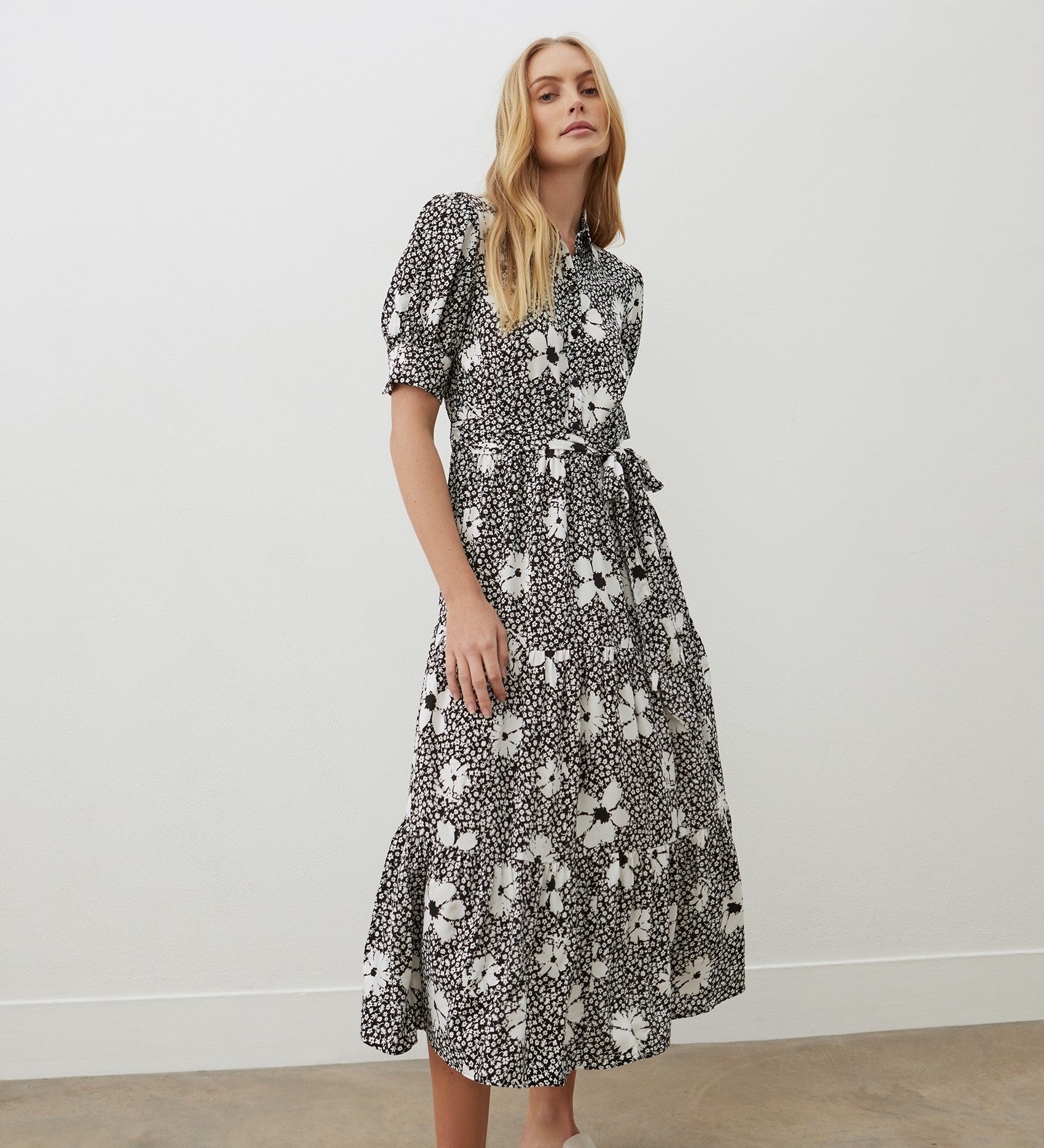A ditsy summer shirt dress, Estelle is buttoned-through and midi in length with a tiered hemline. She features short puff sleeves with cuff and button detail and a self-tie waist belt that is fully detachable.