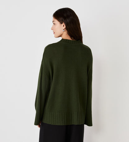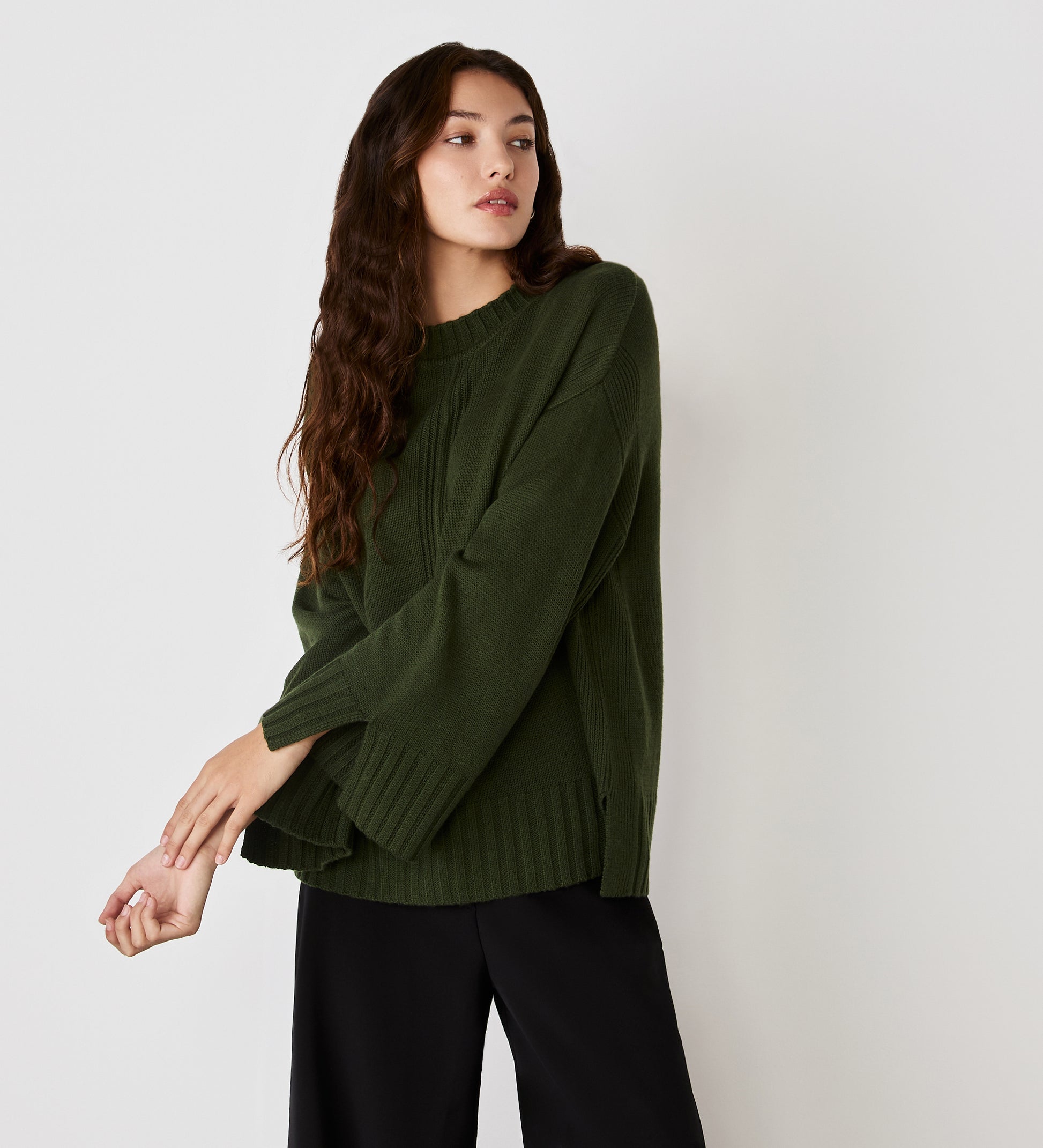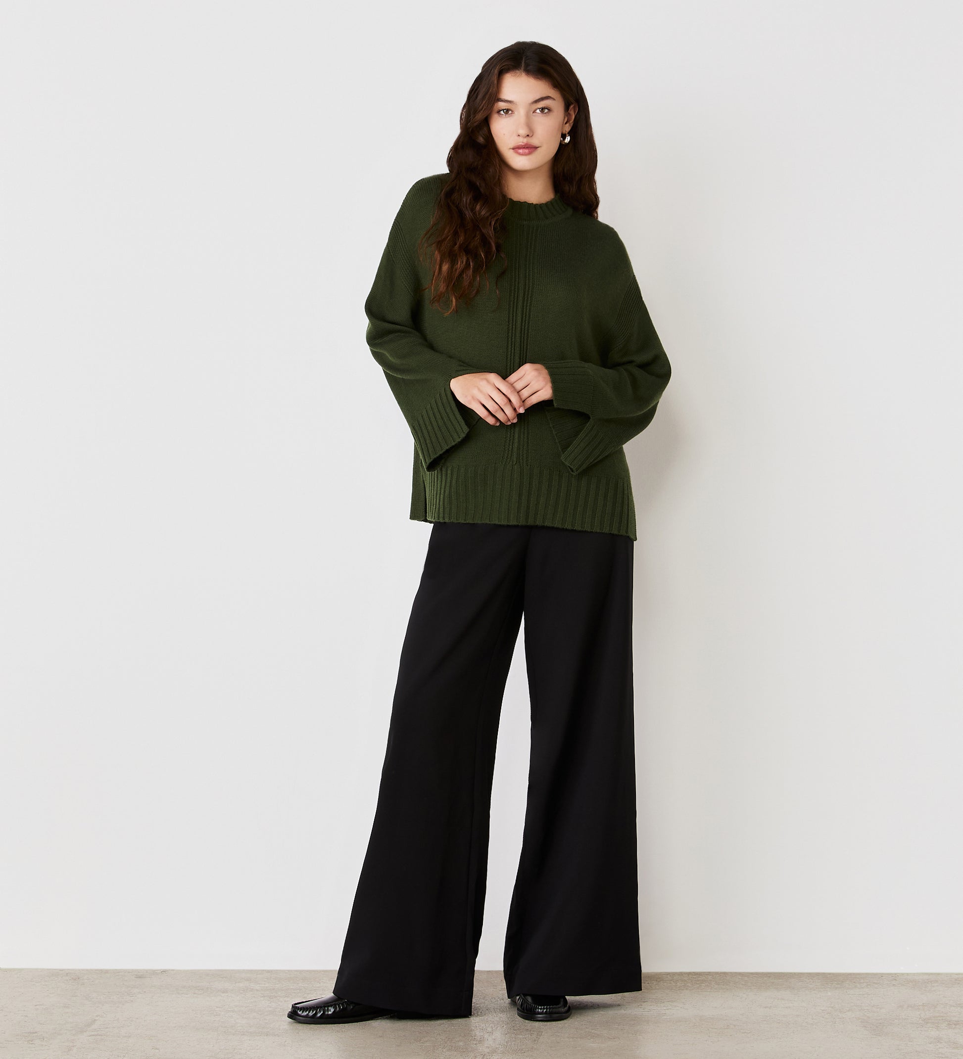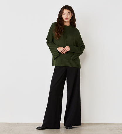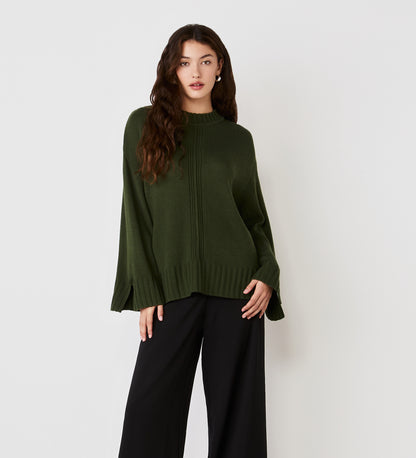 Boxy in shape, Frankie is a round neck jumper with a deep ribbed hemline, neckline and cuffs. She also features side splits as well as split cuffs.