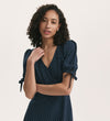 Dressed up or down, Gabriella is a go-to navy polka dot midi tea dress for every occasion. Crafted from our crease-free crepe fabric, she features a feminine V-neck and has short puff sleeves with tie detail. Designed for a flattering fit, this style also includes a concealed side zip for easy wear.