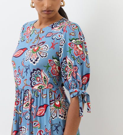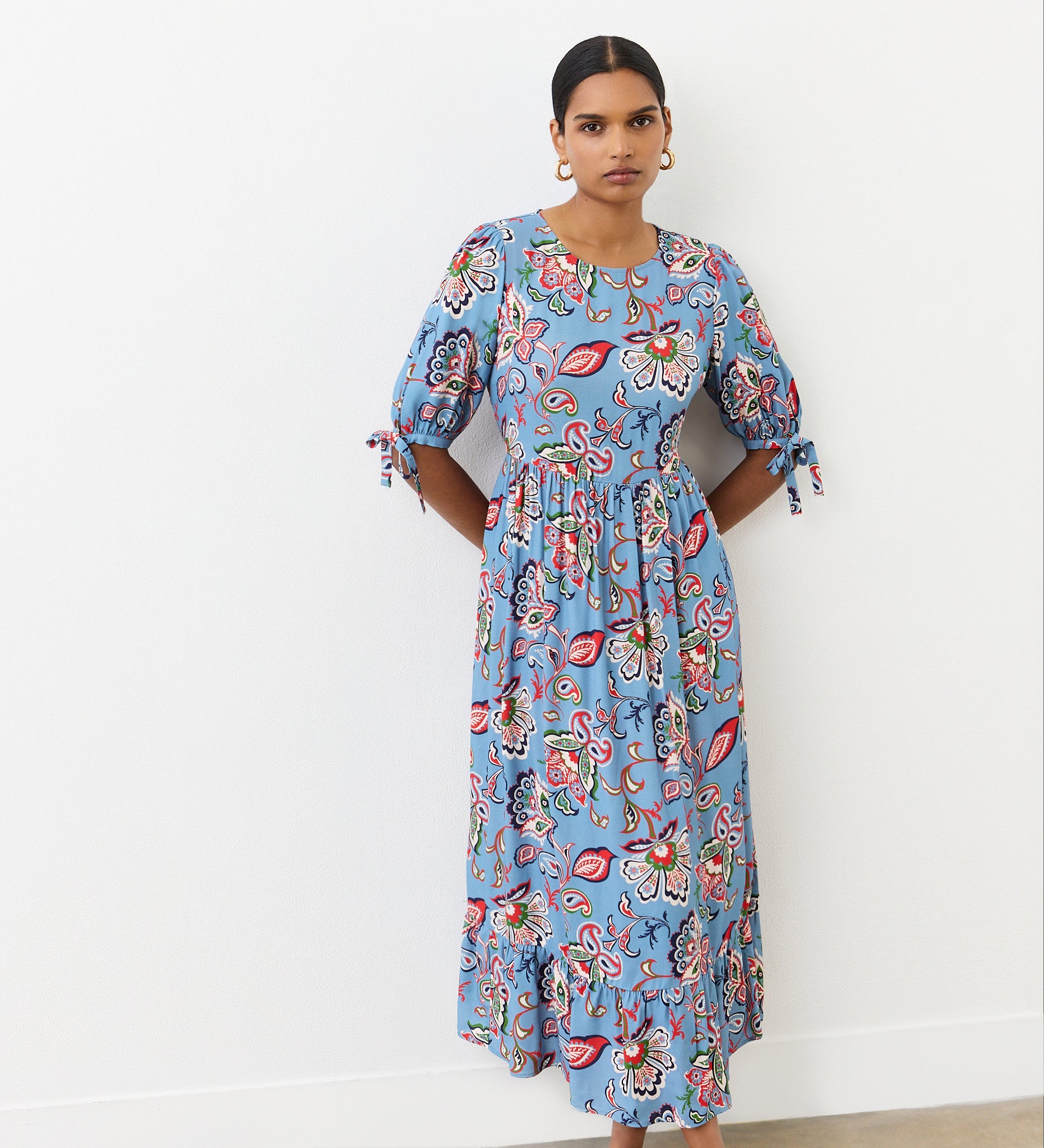A relaxed fit midi dress you can reach for time and again, Gwen features a round neckline and a tiered hem. Crafted from our signature crepe, she also features elbow-length sleeves with tie detail.