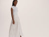 Crafted from our cotton voile fabric, Imani is a white, relaxed-fit midi skirt with a flattering shirred waistband and pintuck detailing with lace trim. A summer wardrobe staple that offers both comfort and style.