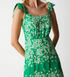 A scatter print for the summer, Indica is a midi dress with a tiered hemline, crafted from our lightweight viscose. We love the tie detail straps and ruched bust. The fitted under bust seam flatters the figure, before flowing into a long and fluid skirt. Pair with sneakers, loafers or sandals.