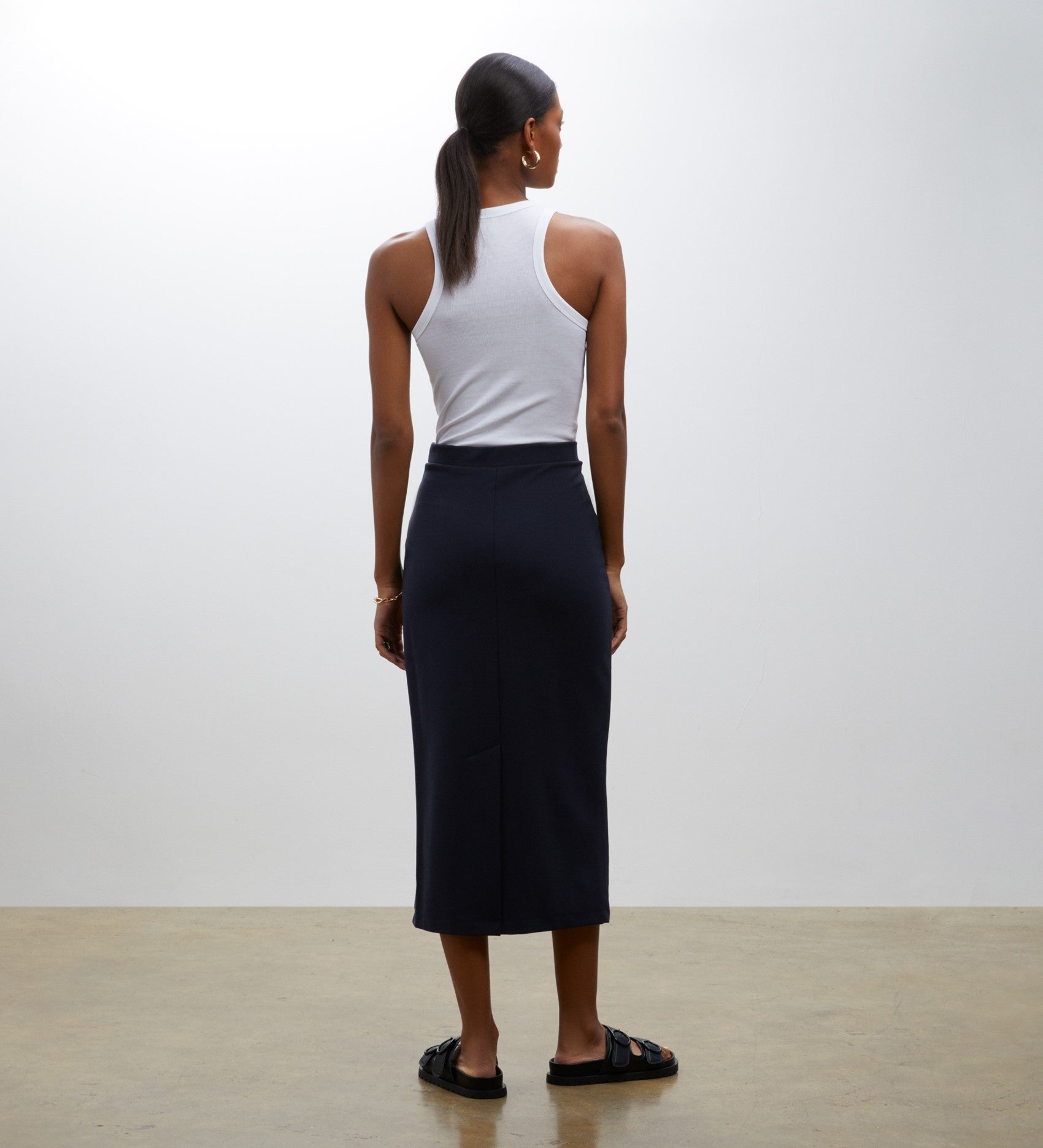 Hugging your curves in all the right places, this ponte jersey pencil skirt is effortlessly sophisticated. The slit at the back enables you move freely, pair with heels and shirt for an office chic style.