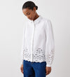 We love this scalloped hemline on our 100% cotton white broderie anglaise shirt. With cut work broderie at the hem and button-fastening cuffs, Jayne also has blouson sleeves that fit in with our much-loved fit and flare style.