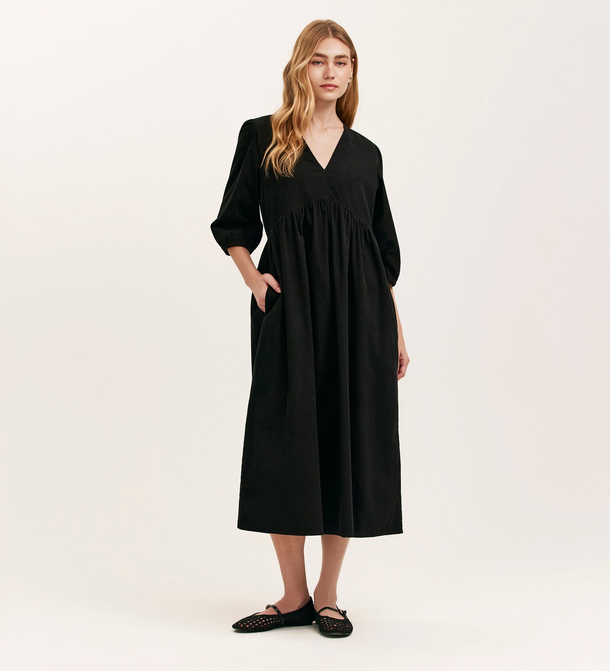 Featuring a flattering V-neckline, Jaz is cut from soft corduroy that offers both warmth and texture. A relaxed-fit midi dress with an easy, understated charm, Jaz also features practical side pockets, making her a versatile wardrobe addition you'll reach for year after year.