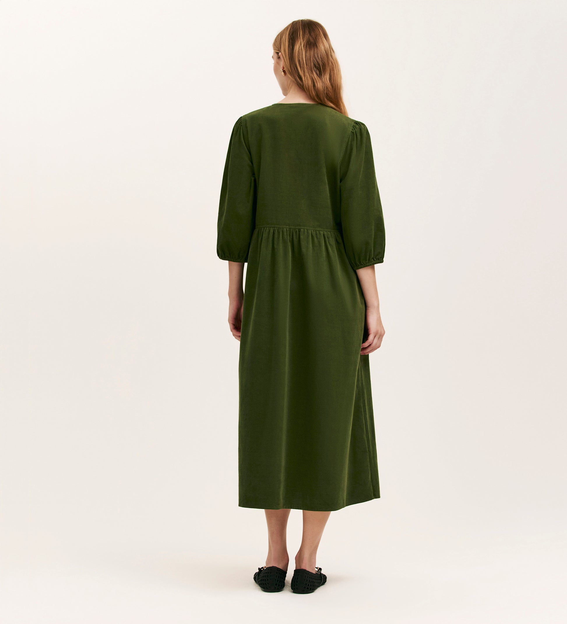 Featuring a flattering V-neckline, Jaz is cut from soft corduroy that offers both warmth and texture. A relaxed-fit midi dress with an easy, understated charm, Jaz also features practical side pockets, making her a versatile wardrobe addition you'll reach for year after year.