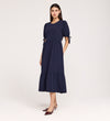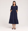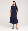 Jessa Navy Crepe Midi Tiered Dress
