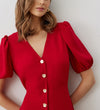 A throw-on dress is the go-to outfit for an easy breezy look. A classic-style tea dress, Kimberley is a buttoned-through midi dress, crafted from our signature crepe fabric. A ruched bust adds an ultra-feminine touch, as do the short, ruched sleeves.