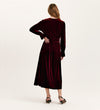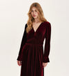 Laila blends relaxed elegance with a touch of romance. Designed with a flattering V-neckline and long sleeves finished with soft ruffle cuffs, she also features a gently gathered waistline that flows into a fluid midi-length skirt. Crafted from plush jersey velvet, Laila offers a subtle gleam and luxurious feel, perfect for effortless day-to-evening dressing.