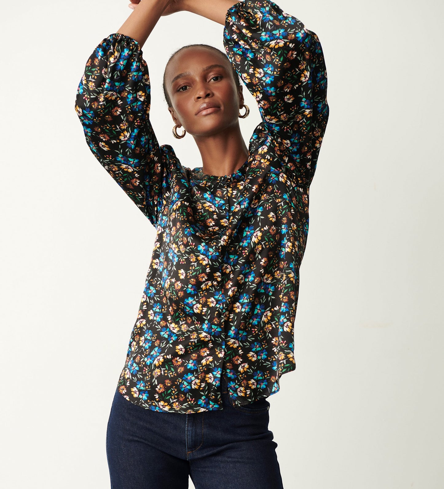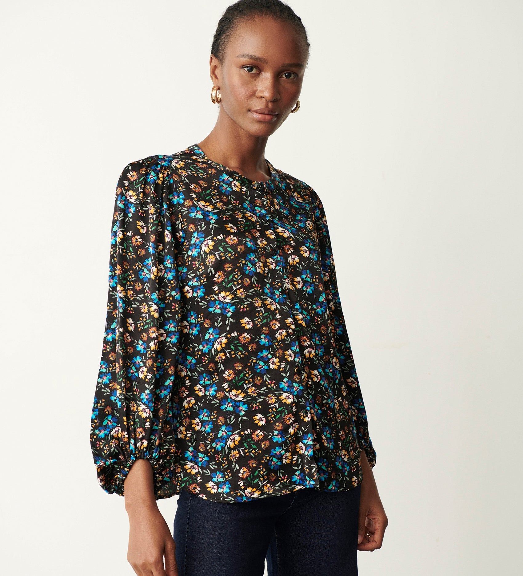 We love this blue floral print on our signature viscose fabric. Lena is a feminine and fun voluminous blouse. With voluminous puffed shoulders, the long sleeves flow into elasticated cuffs. Lena is also a buttoned-through blouse with a round neckline. Pair with jeans or match with our Mandy Skirt.