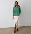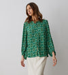 Lena is a feminine and fun blouse perfect for the summer weather. With voluminous puffed shoulders, the long sleeves flow into elasticated cuffs. Lena is also a buttoned-through blouse with a round neckline.