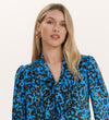 Lindsay Blue Animal Print Pussy Bow Blouse