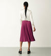 Made from pleated crepe, our Lottie midi skirt has a thin paneled waistband that draws attention to your waist before draping beautifully over the legs. The skirt also has an easy side zip fastening and added button detail. Wear yours with a tucked in jumper and boots during the day, switching to a blouse and heels for date night.