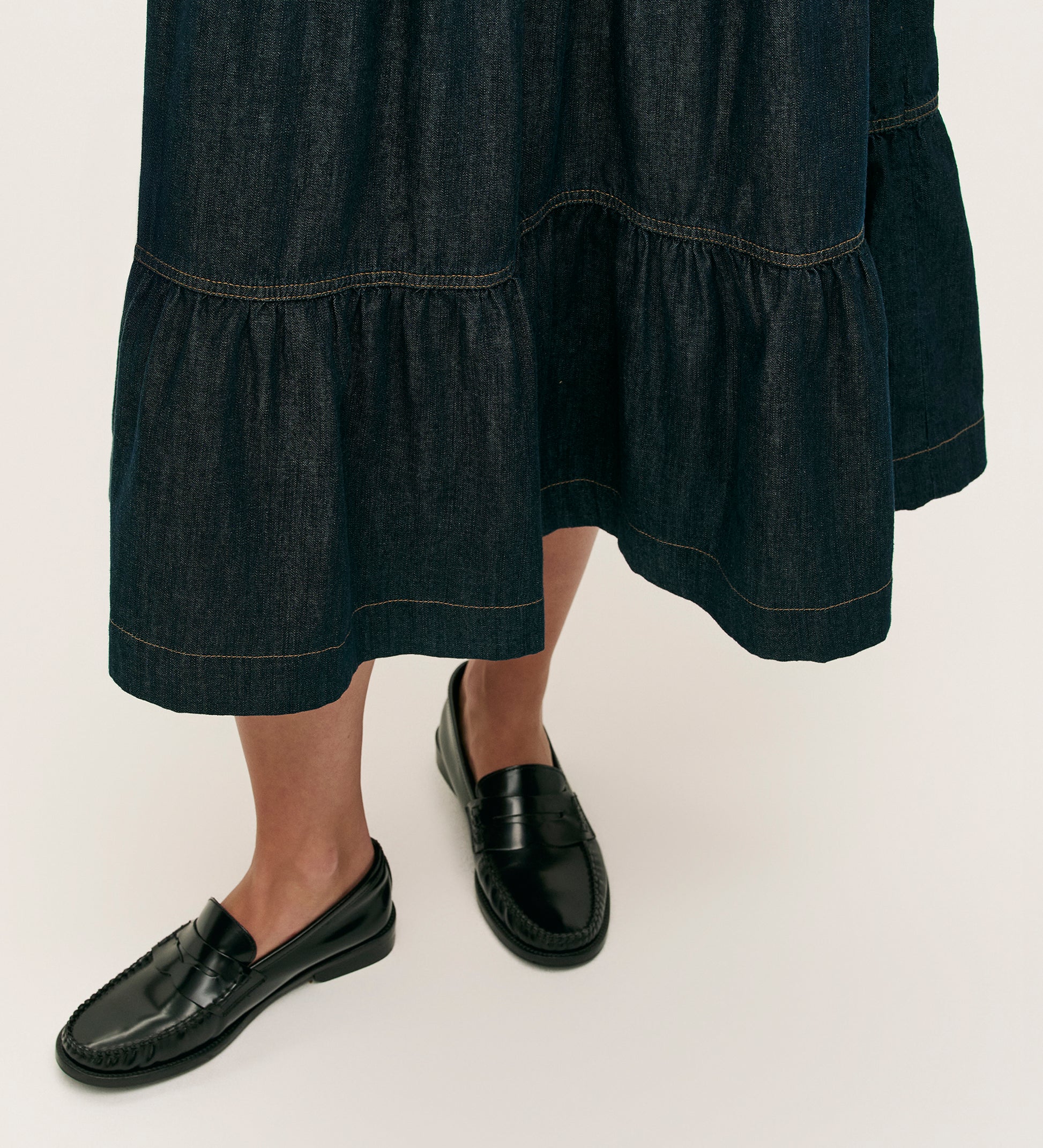 Crafted from denim and finished with a comfortable elasticated waistband, Lulu is a midi skirt that offers all-day comfort with a flattering fit. The tiered silhouette adds gentle volume and movement, making Lulu a versatile staple that dresses up or down with ease.