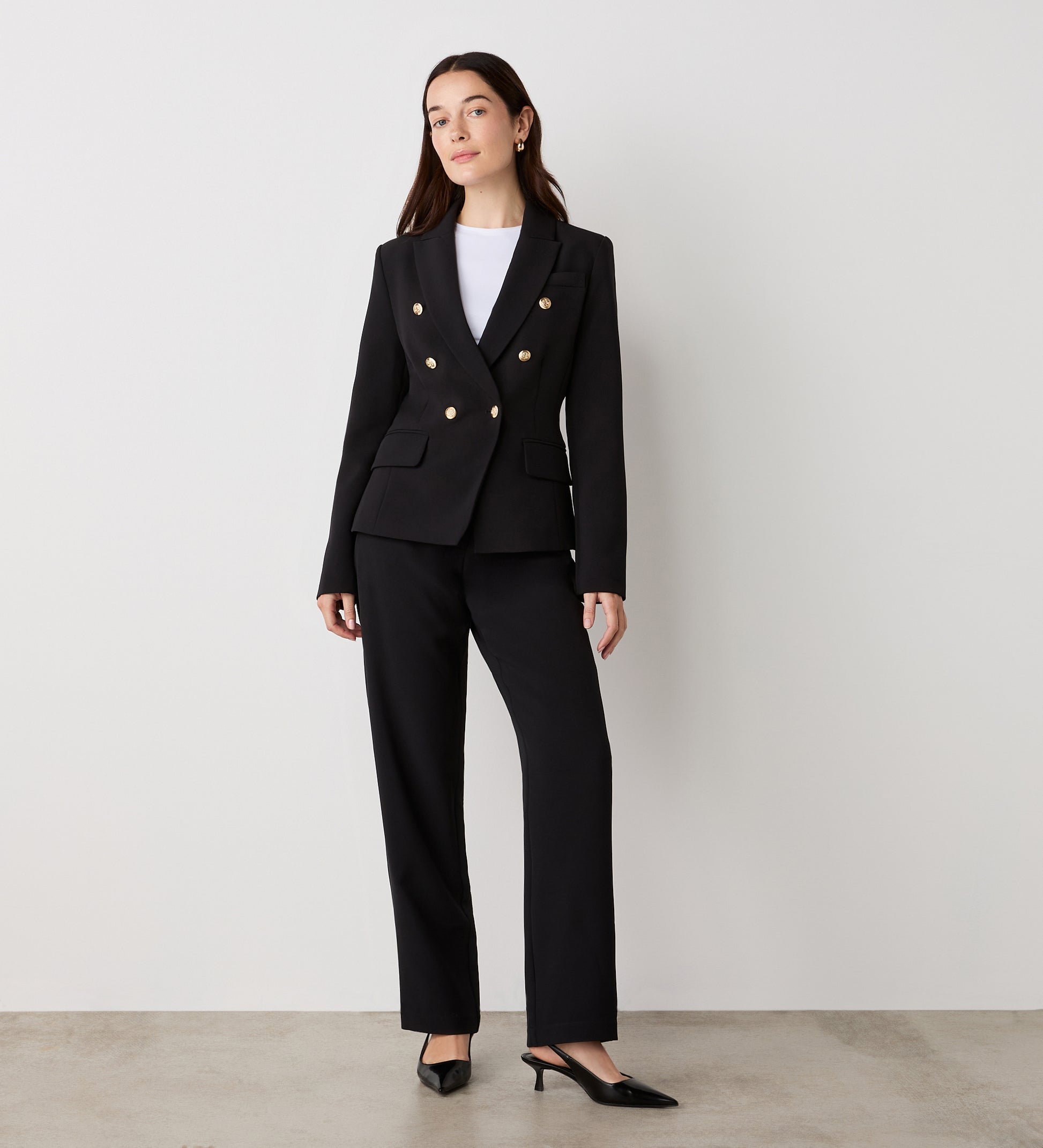The Lydia black tailored blazer is a contemporary take on a classic. Featuring gold button detail on the front and cuffs and side pocket details, this tailored jacket will effortlessly take you from day to evening in style. Team it with matching trousers to create a sharp suit.
