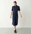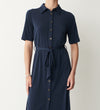 Maddie Navy Jersey Crepe Midi Shirt Dress