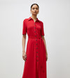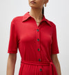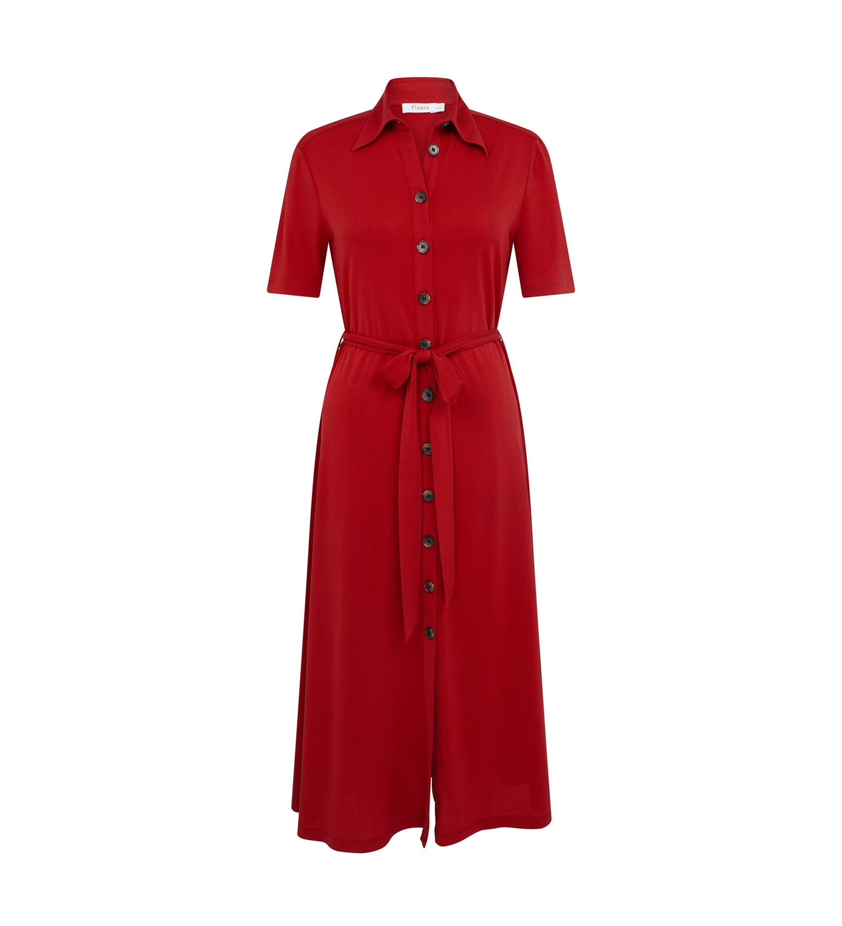 A classic button-through shirt dress crafted from our signature jersey crepe, Maddie is midi in length and features a classic collar and short sleeves, but with an on-trend tie waist belt for a flattering fit. A simple stylish look, dress up with heels and statement accessories, or down with loafers and a denim jacket.