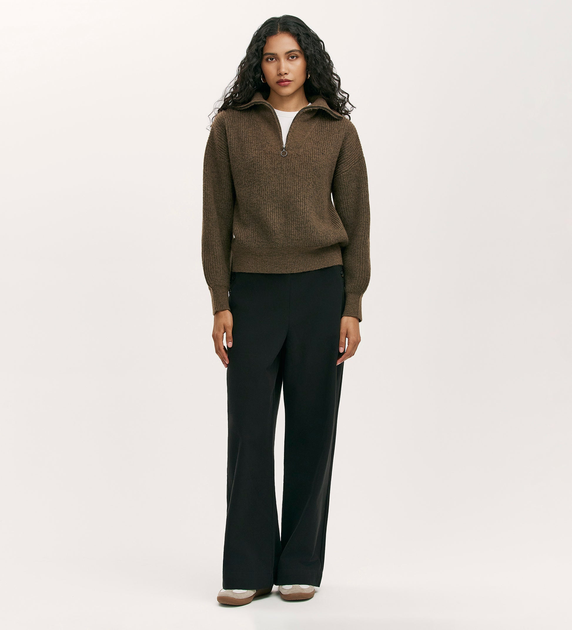 Maddy is a knitted jumper that combines casual ease with a sporty edge. Featuring a funnel neck with zip opening, she offers both warmth and versatility, while long sleeves and a relaxed fit make her an easy layering piece. Effortlessly adaptable, Maddy works well for laid-back weekends and adds a contemporary touch to everyday looks.