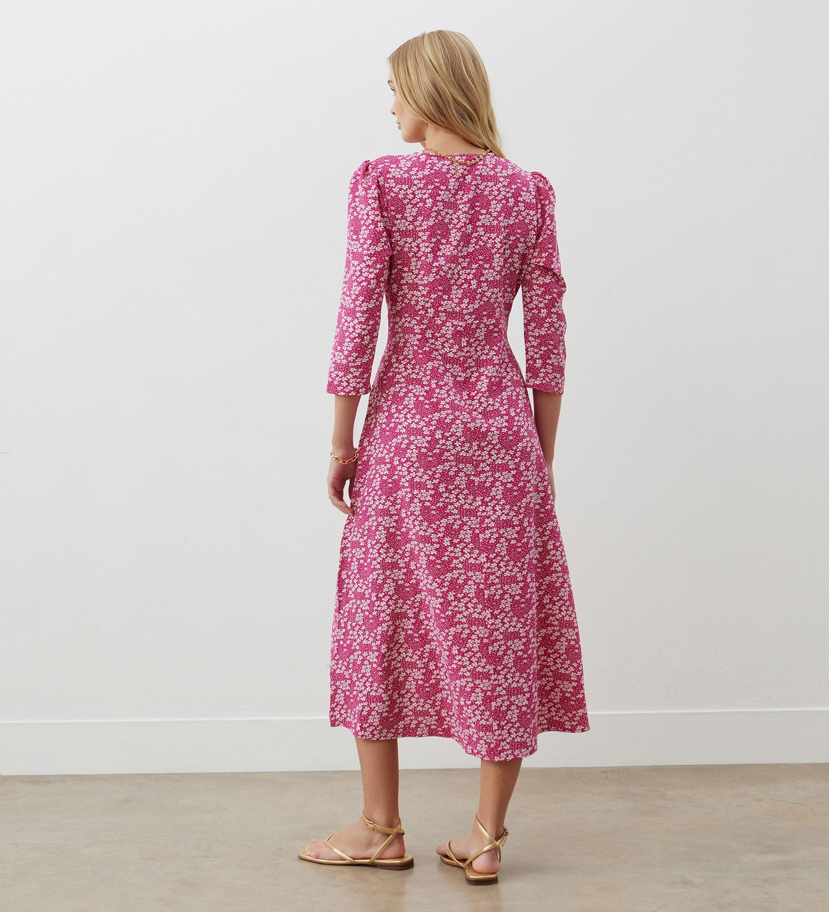 Madonna Pink Floral Crepe Midi Dress