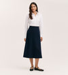 Mae is our high waisted, A-line midi skirt featuring an internal elasticated waistband and top stitch seam detail.