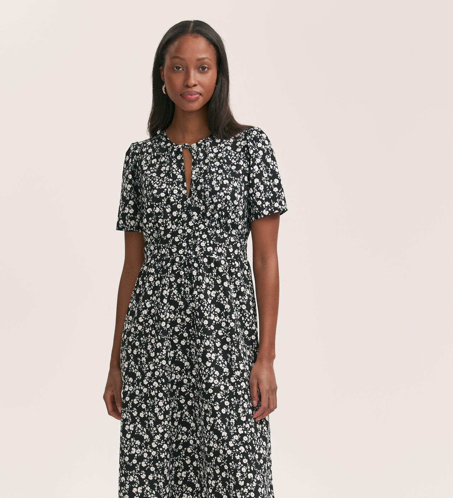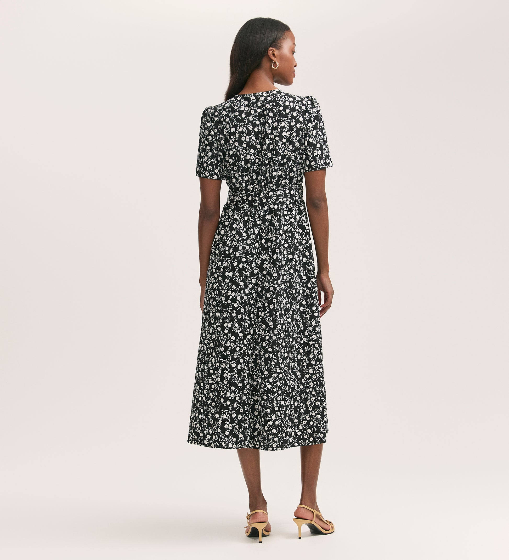 Mairead Black Ditsy Crepe Midi Tea Dress
