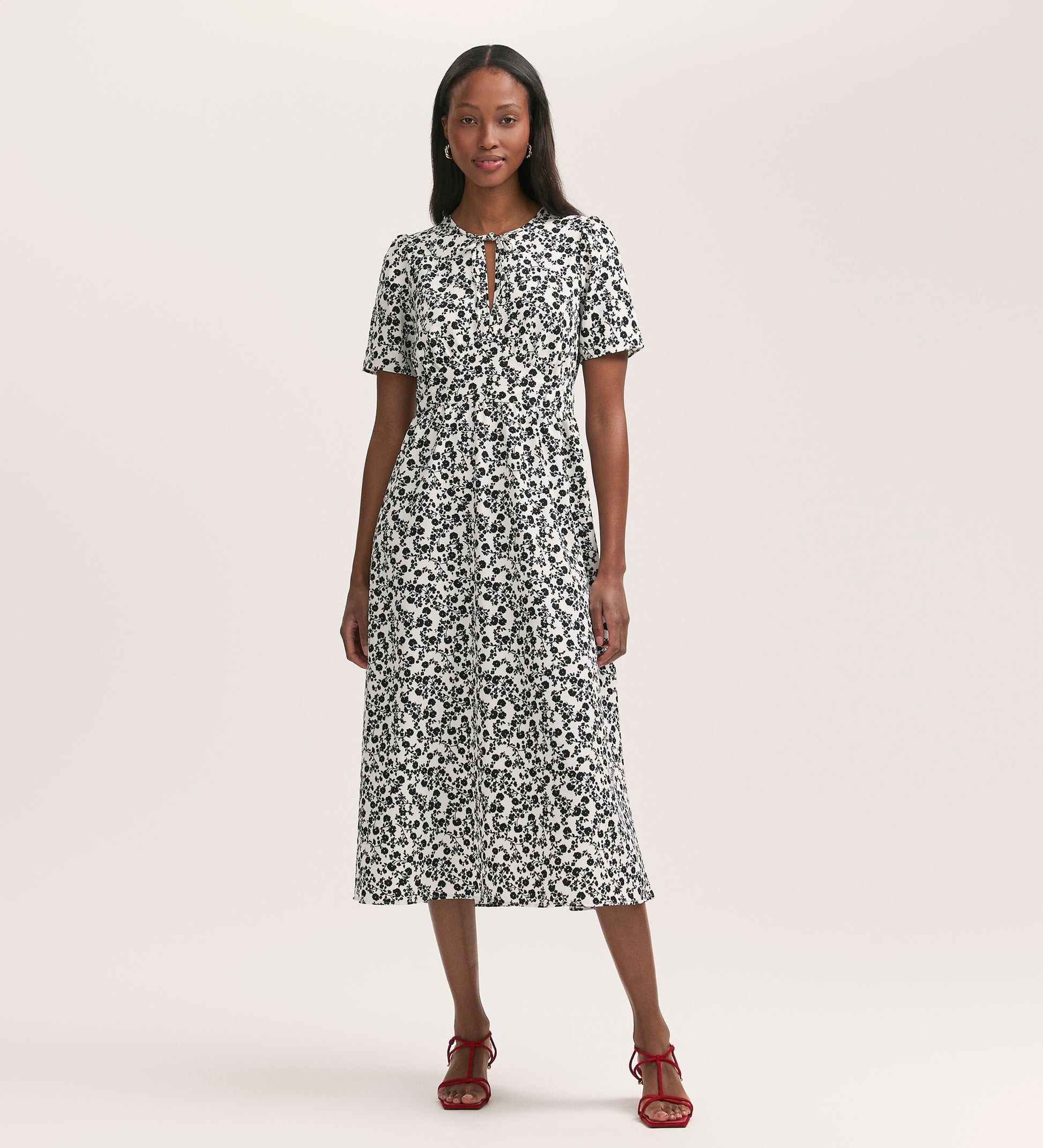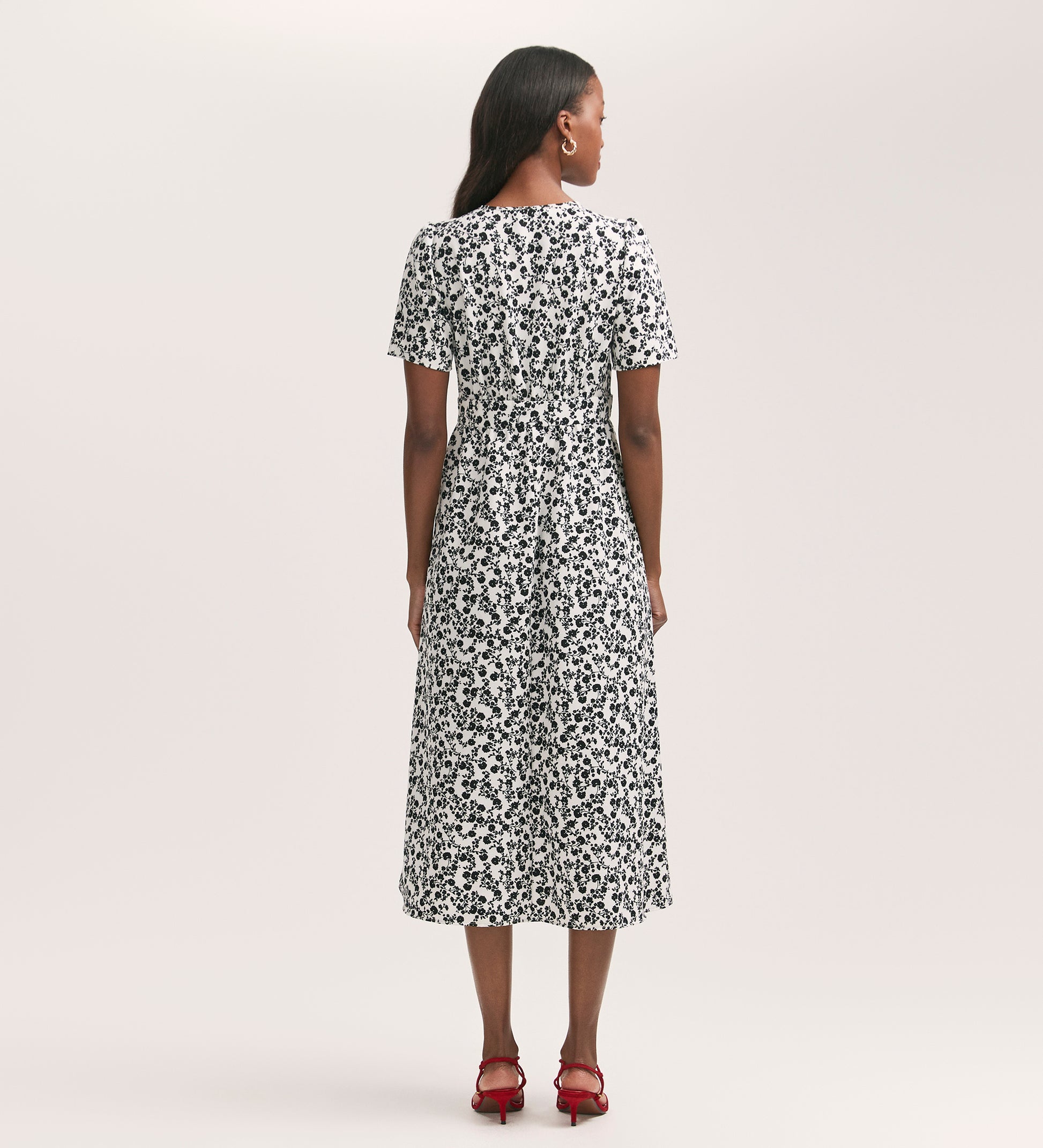 Mairead Ivory Ditsy Crepe Midi Tea Dress