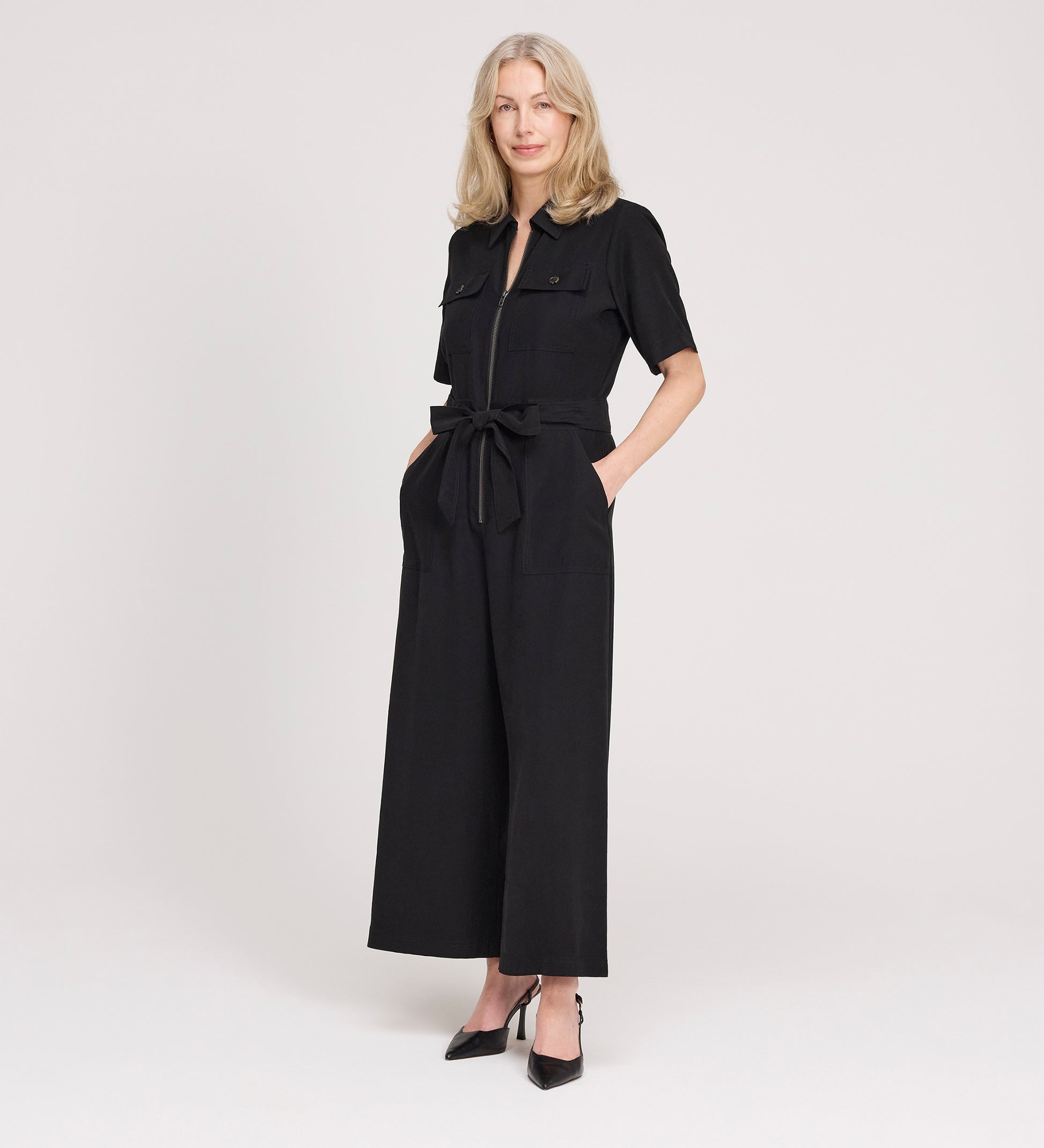 Meet Marie - our utility style jumpsuit that's sure to become your everyday go-to. She features a zip front and has a detachable belt to adjust the fit. Marie also has collar detail and front patch pockets.