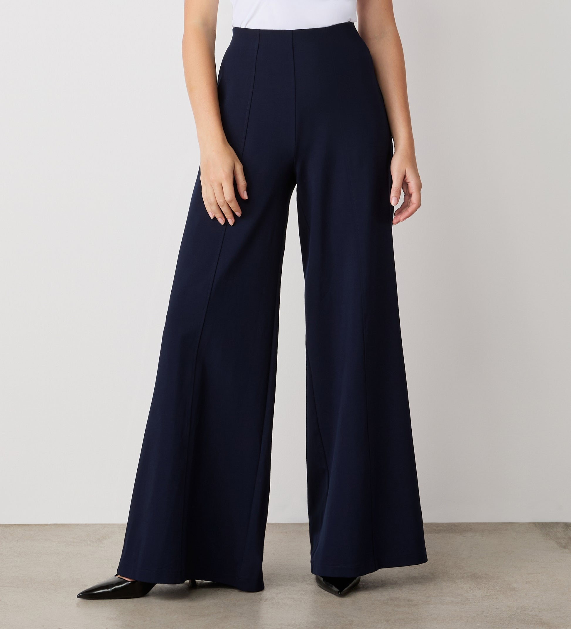 Matilda Navy Ponte Jersey Wide Leg Trousers