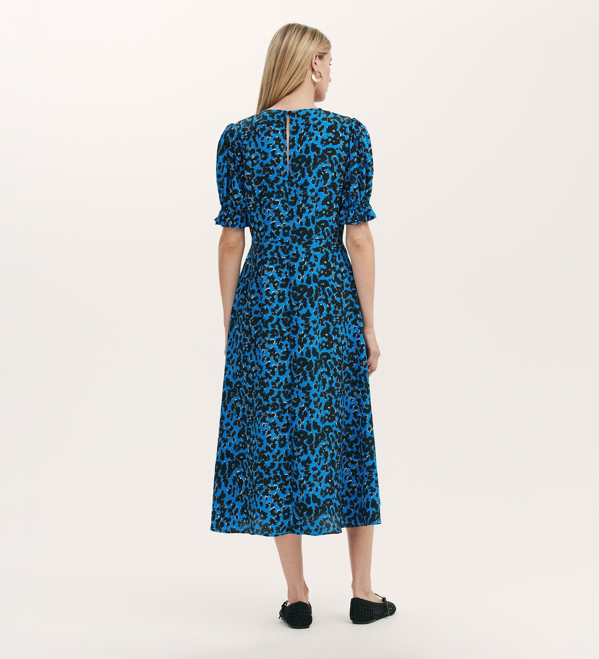 Crafted from crepe for an effortlessly chic look, Mela is a midi dress that will see you through any occasion. With an elegant round neckline and empire line waist seam, this dress provides just the right amount of coverage. We love the short sleeves with elasticated cuffs and ruffle detail and the easy-to-dress rear keyhole fastening. Pair with chunky ankle boots and a winter jacket for colder weather, or opt simple sandals for the summer.